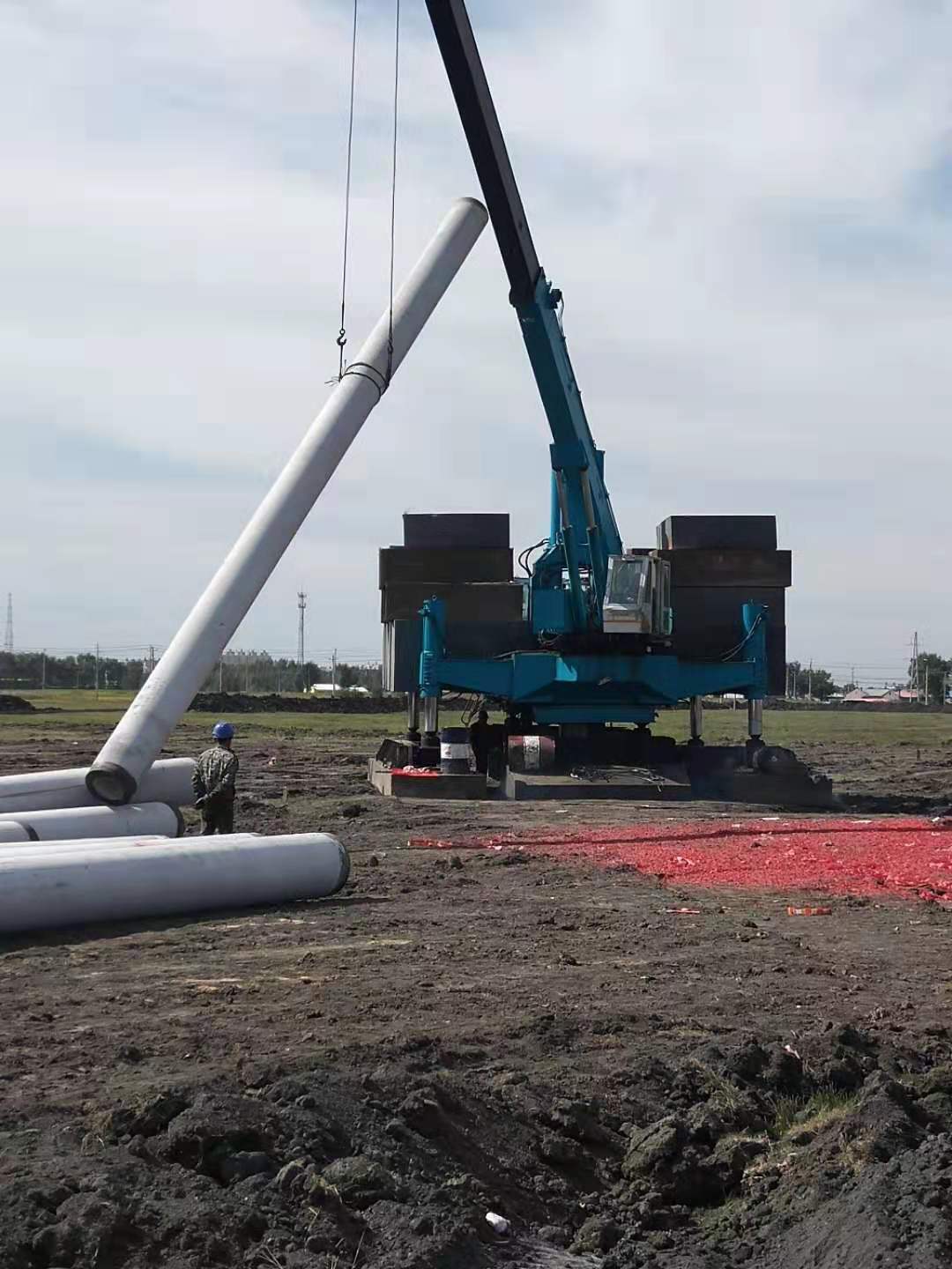 打樁機將水泥樁吊起